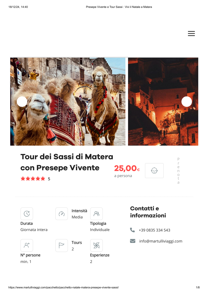 Presepe Vivente Matera 2025: tour da Bari a Matera