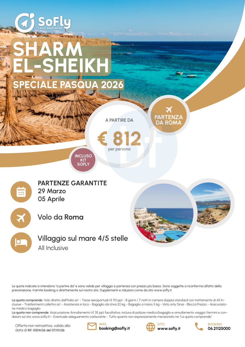 Sharm el Sheikh Speciale Pasqua 2026 con Volo da Roma a partire da € 812 a persona