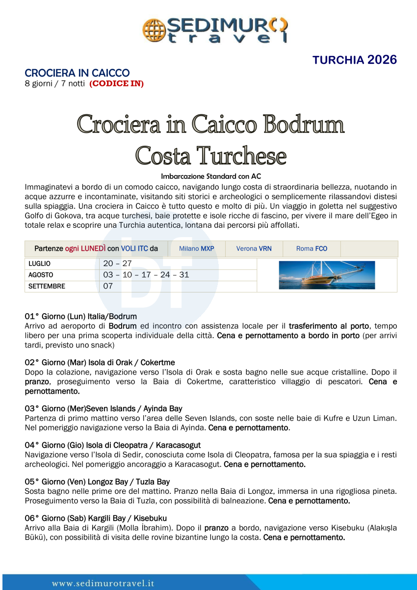 Crociera in Caicco Bodrum CostaTurchese con volo da mxp, vrn, fco e nap ogni lunedì 8 giorni