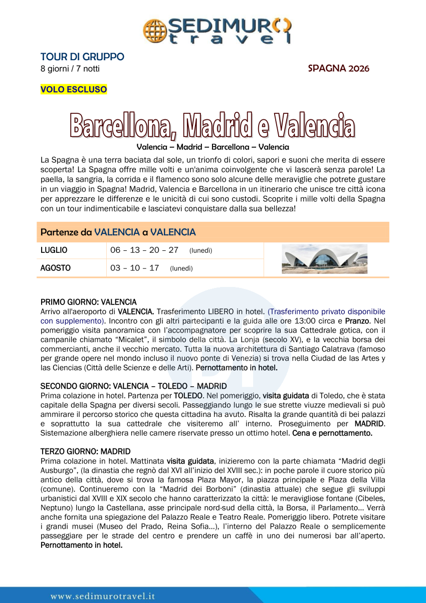 Barcellona, Madrid e Valencia da Valencia 8 giorni