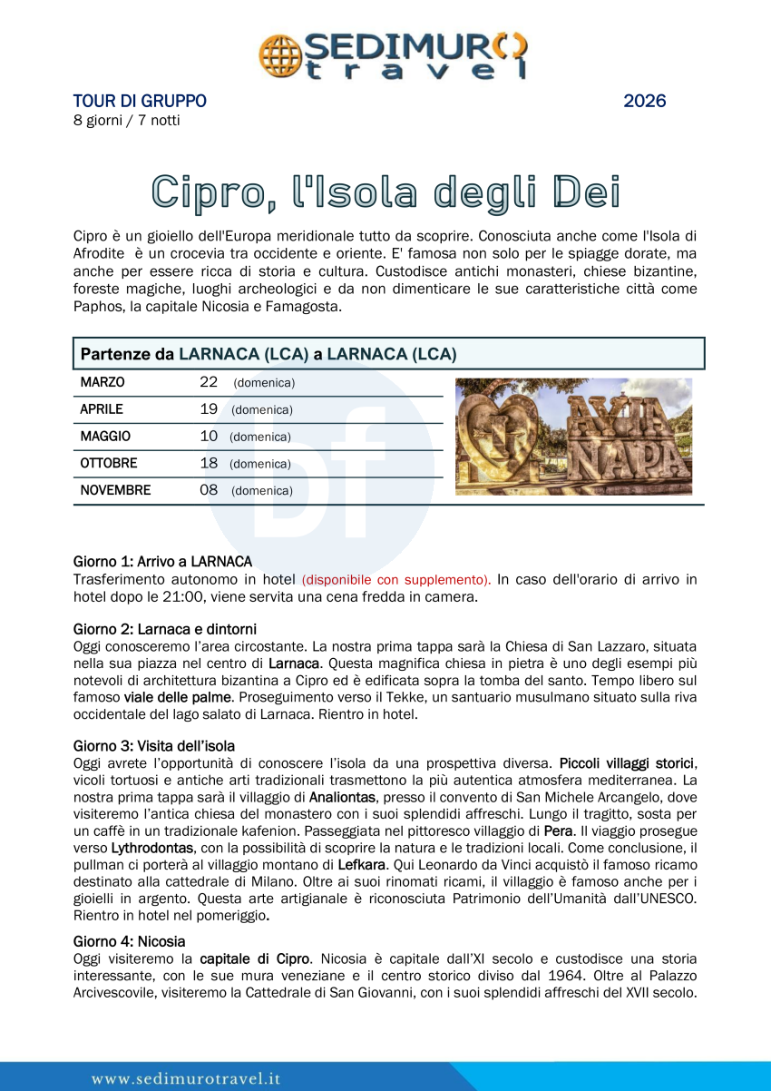 Cipro, l’isola degli Dei da Larnaca 8 giorni